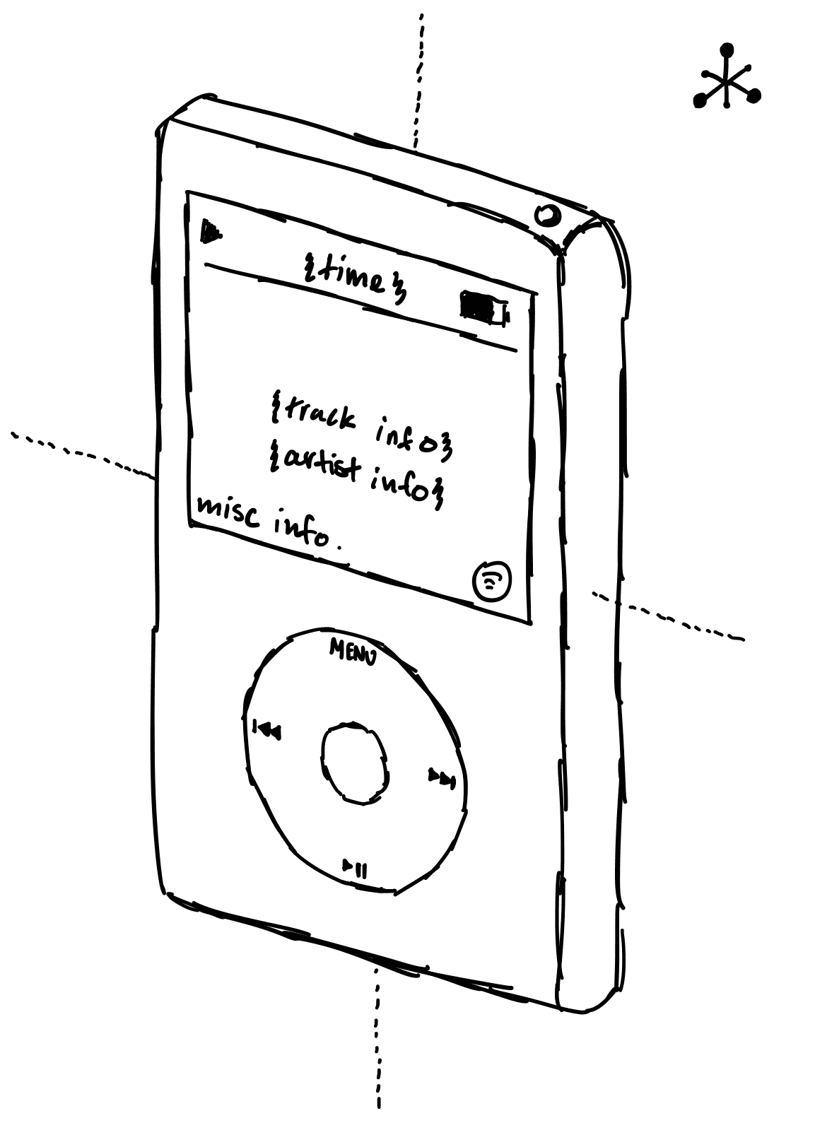 The first part of the project was creating the model itself. I drew inspiration from many different iterations of the iPod such as the mini, the class, and the nano, drawing from features like the screen