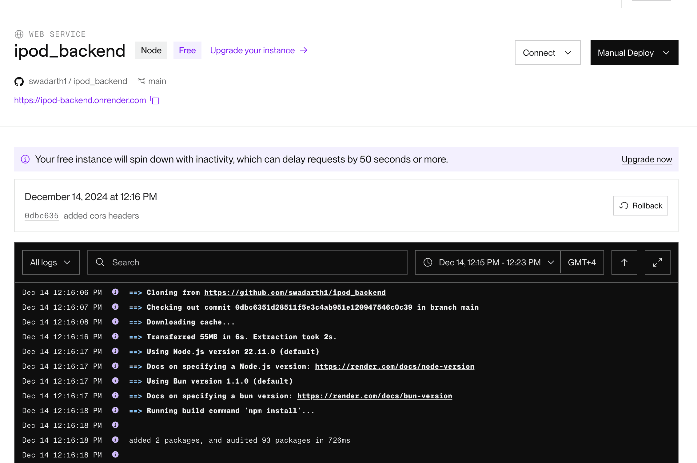 After the code worked successfully in local testing, I moved on to finding a hosting service. Render.com was the ideal option as it offered a free plan for the services I needed. It offered a seamless connection to my GitHub repository and was super easy to deploy.