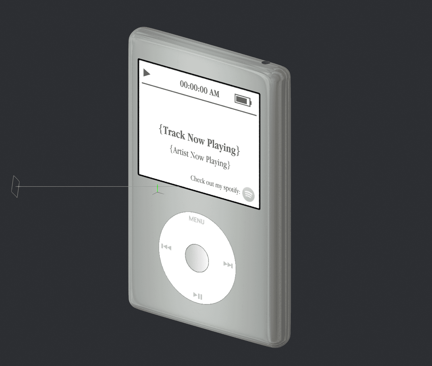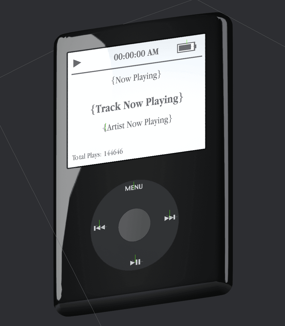 However, in the end, I had a great model of an iPod that displays track, artist, nowplaying, and time data in real-time.