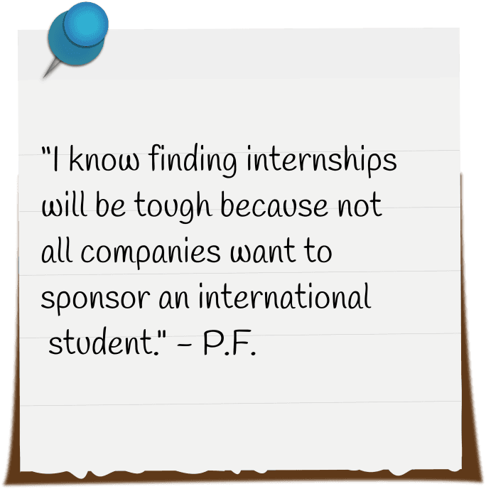 3 of our 4 interviewees indicated notable difficulty in getting securing visa sponsorship and internship offers due to their out-of-country citizenship, feeling significantly disadvantaged. This is especially prevalent in fields like Aerospace Engineering. As international students have a limited, total allotted work time, an interviewee mentioned this adds a layer of complexity when planning for the future.