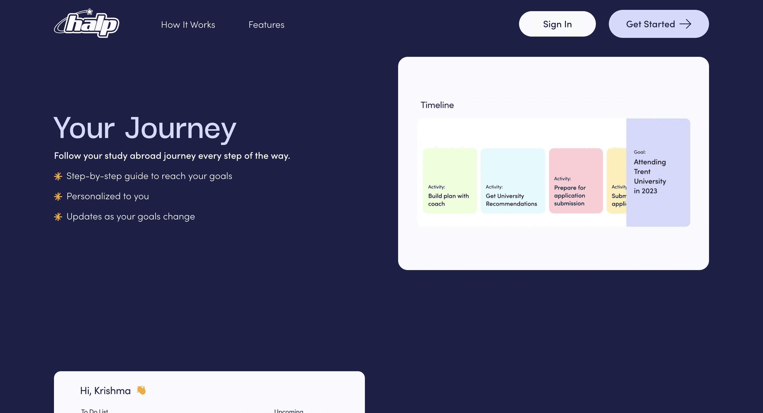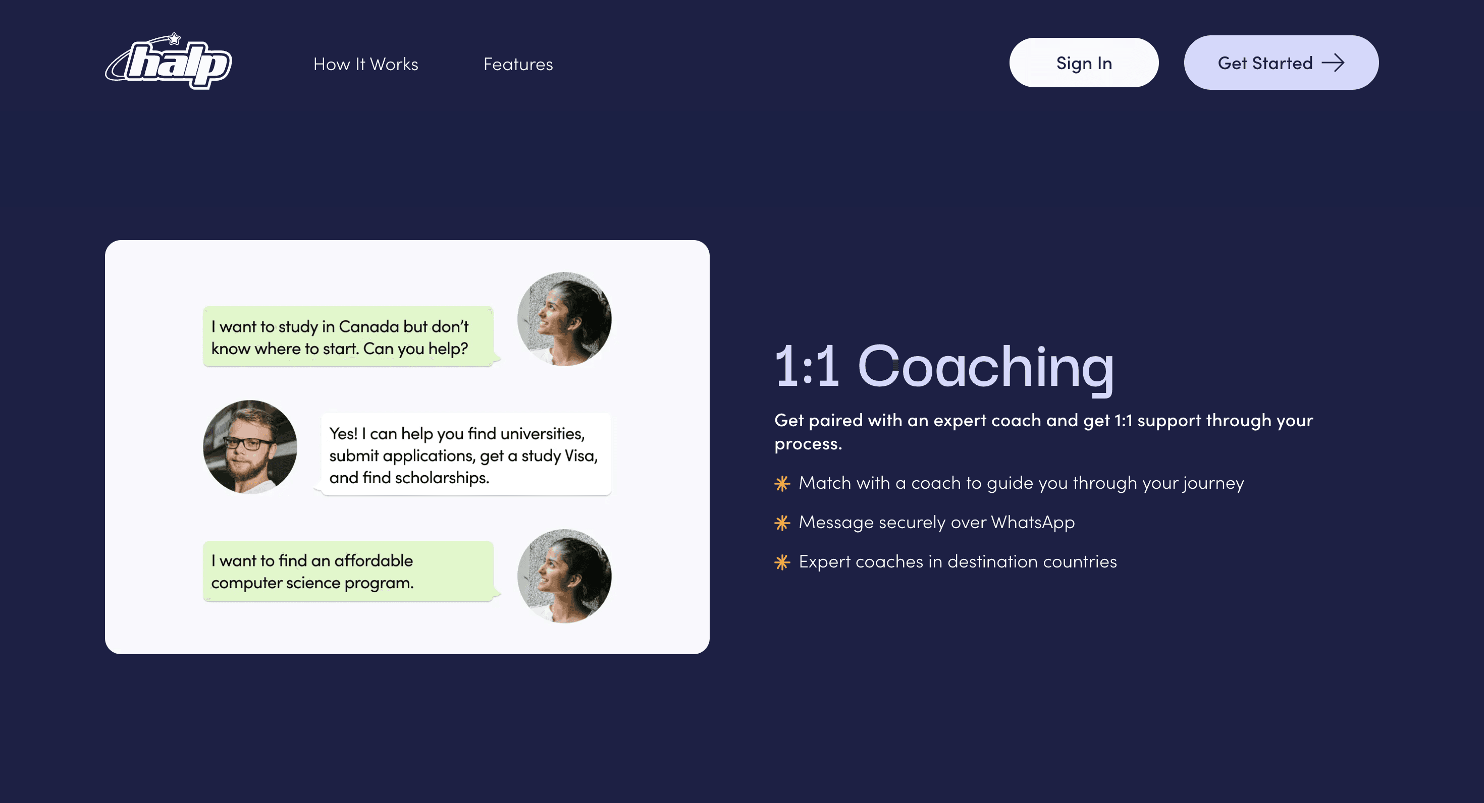 Halp is platform that helps international students through the university admission process, claiming to make "being an international student easy and accessible". The app is significantly more focused on the pre-university admissions process, connecting students with mentors that guide them from start to finish with applications, documents, scholarships and financing, and more.