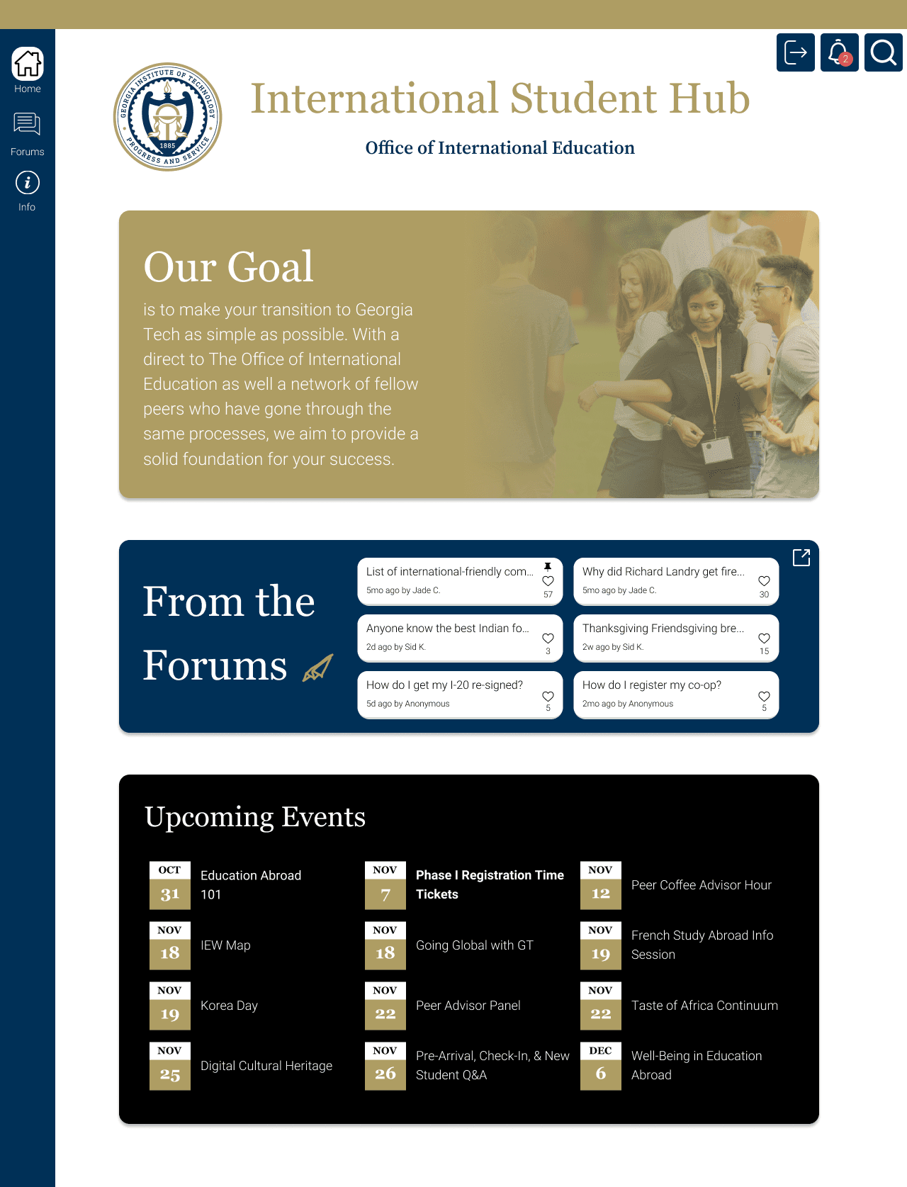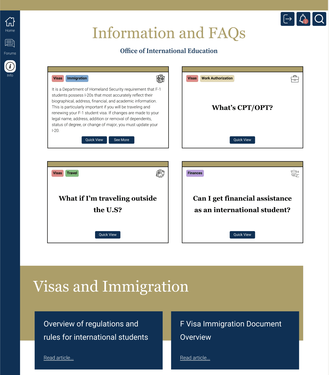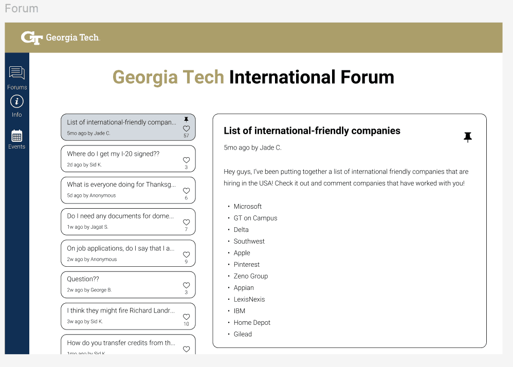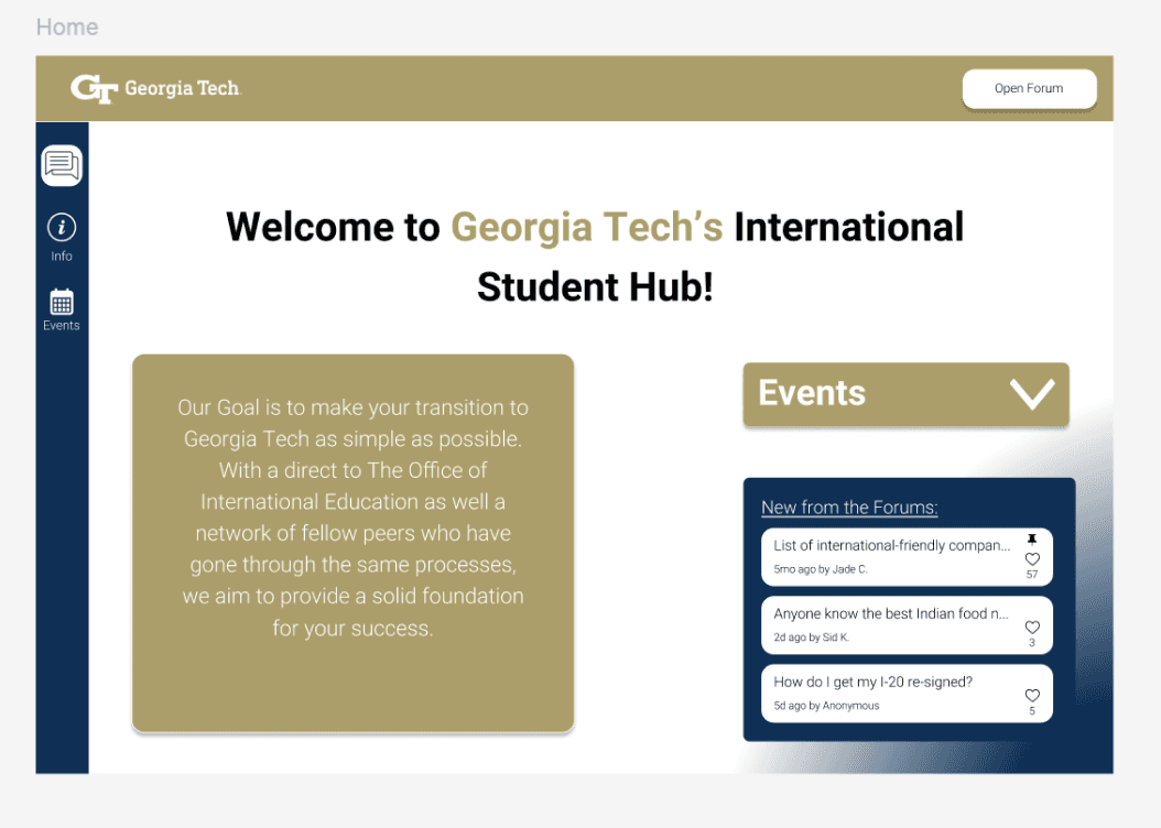 Based on insights from our primary and secondary research, we suggested a web platform that extends the OIE's existing capabilities. This platform would integrate a forum alongside OIE’s official information database, creating a centralized hub for international students to access resources and engage in a streamlined dialogue between the OIE and themselves.