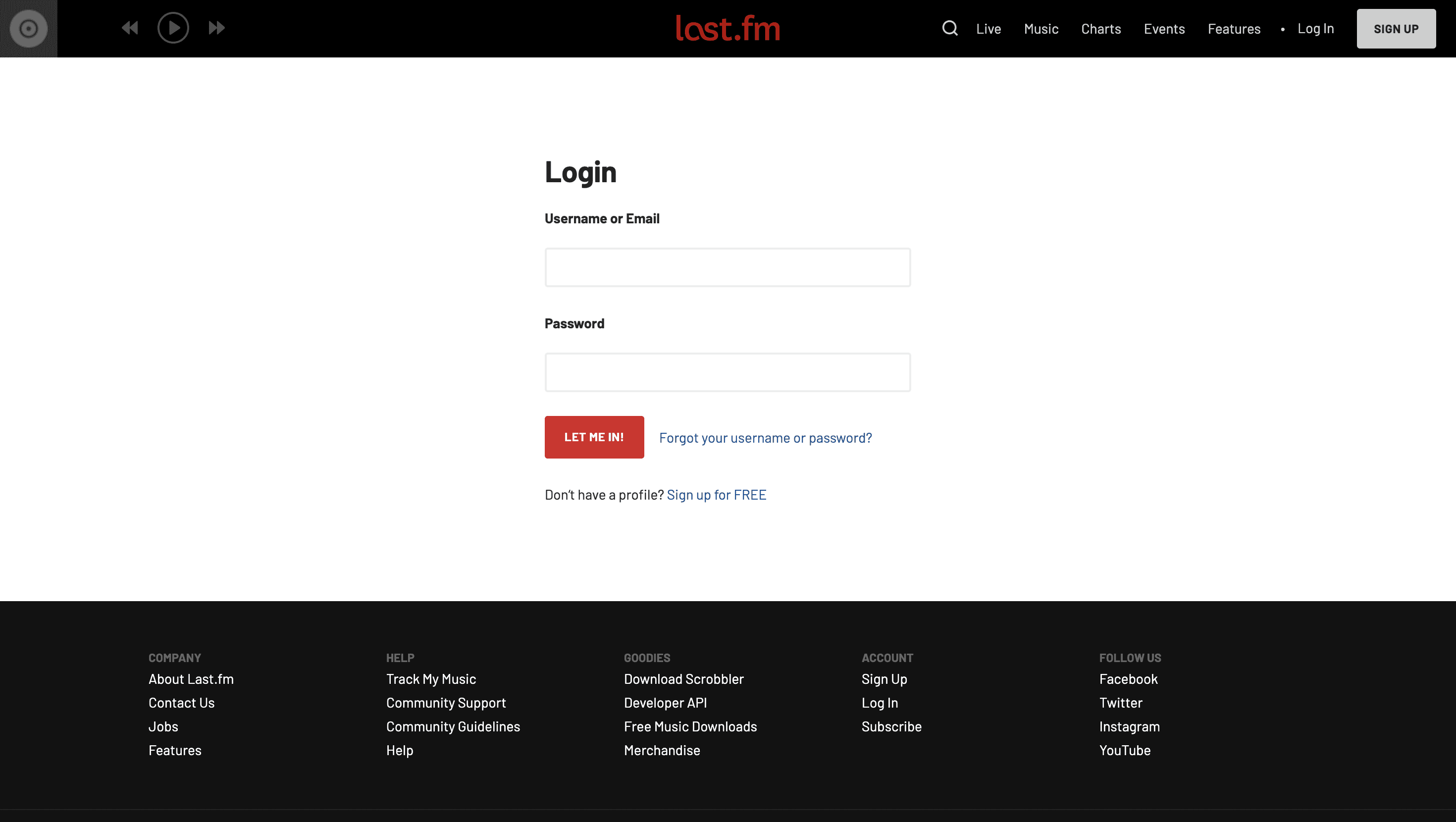 last.fm is the world's largest online music service. The existing login page is below: